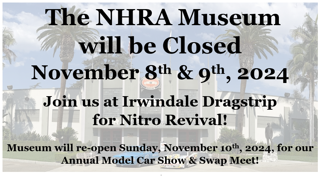 NHRA Wally Parks Motorsports Museum IS NOW A CASHLESS FACILITY.